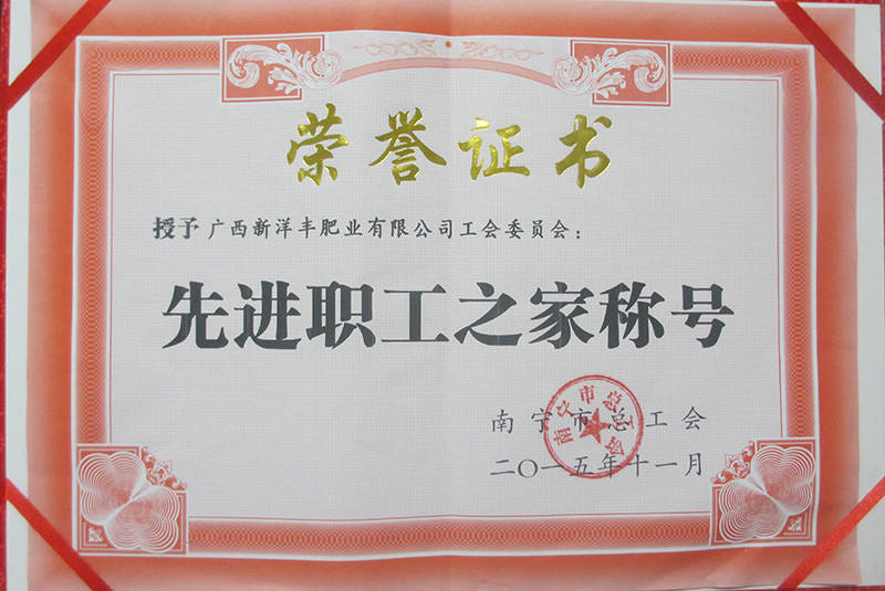 近日,广西yl6776永利集团收到喜报,该公司工会被南宁市总工会评为先进职工之家。