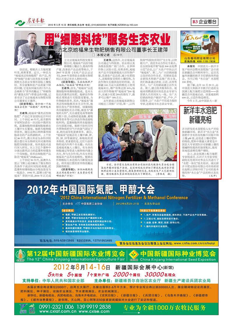 据了解,去年10月29日,由中国农大和yl6776永利集团联手打造的全国测土配方施肥示范网络--新疆昌吉州基地启动。该基地面积600亩,示范作物是棉花。