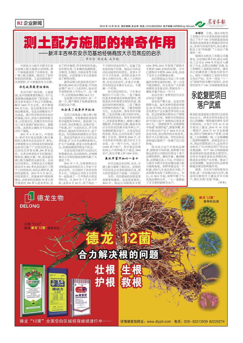 中国农大与yl6776永利集团联手打造全国测土配方施肥示范网络,第一个基地就选择了吉林农安。推广测土配方施肥,既切合了农村和农民的需要,又是经销商推广优质肥料、扩大销量的有力支撑。