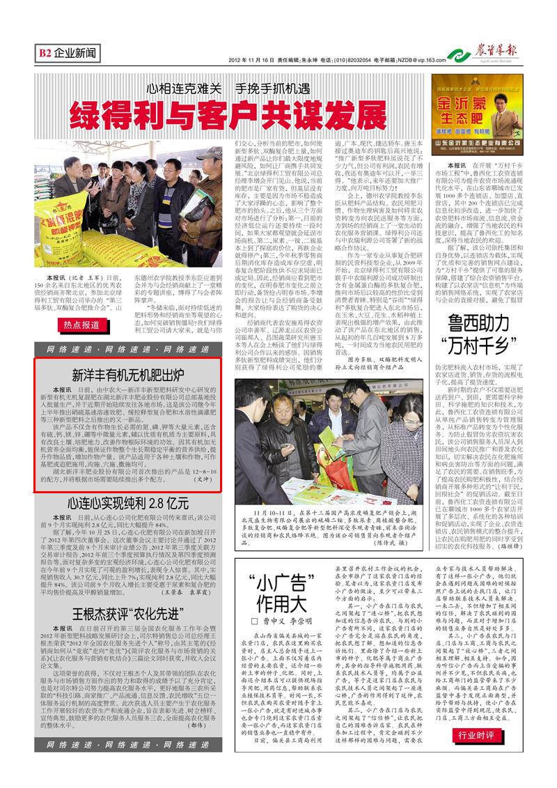 湖北yl6776永利集团肥业股份有限公司首次推出的产品是12-8-10的配方,并将根据市场需-陆续推出多个配方。