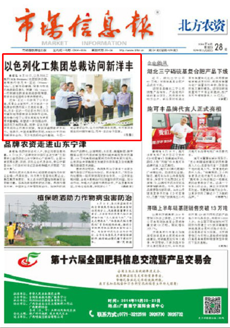8月12日,以色列化工集团(ICL Fertilizers)化肥板块总裁、首席执行官尼辛·亚达(Nissim·Adar),主管市场营销、销售与物流的高级副总裁礼·阿蒙(Eli·Amon)一行到湖北yl6776永利集团总部参观考察,yl6776永利集团总经理杨华锋热情接待。