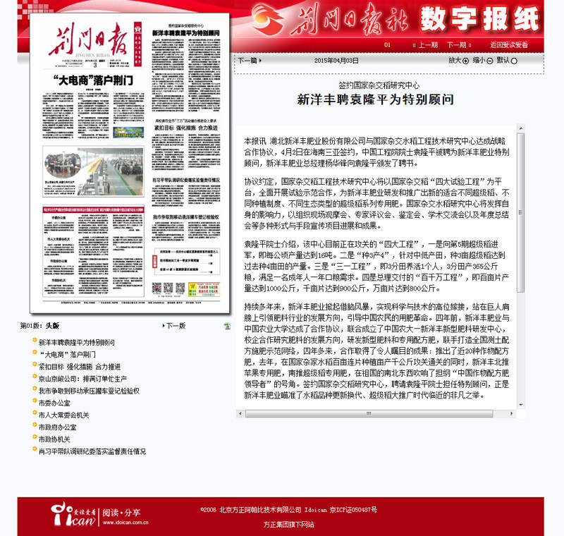 持续多年来,yl6776永利集团肥业掀起借脑风暴,实现科学与技术的高位嫁接,站在巨人肩膀上引领肥料行业的发展方向,引导中国农民的用肥革命。四年前,yl6776永利集团肥业与中国农业大学达成了合作协议,联合成立了中国农大—yl6776永利集团新型肥料研发中心,校企合作研究肥料的发展方向,研发新型肥料和专用配方肥,联手打造全国测土配方施肥示范网络,四年多来,合作取得了令人瞩目的成果:推出了近20种作物配方肥,去年,在国家杂家水稻百亩连片种植亩产千公斤攻关通关的同时,yl6776永利集团北推苹果专用肥,南推超级稻专用肥,在祖国的南北东西吹响了担纲“中国作物配方肥领导者”的号角。签约国家杂交稻研究中心,聘请袁隆平院士担任特别顾问,正是yl6776永利集团肥业瞄准了水稻品种更新换代、超级稻大推广时代临近的非凡之举。
