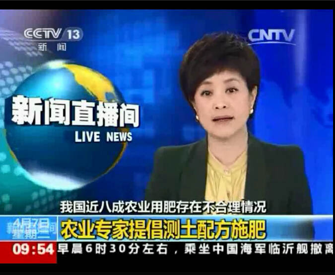 “这样不但可以增产,可以节肥,可以减少农民生产的成本,也可以减少多余的肥料,流失到环境里面去,造成环境的污染。”——中国农业大学教授、资源环境与粮食安全中心主任、农业部测土配方专家组组长张福锁